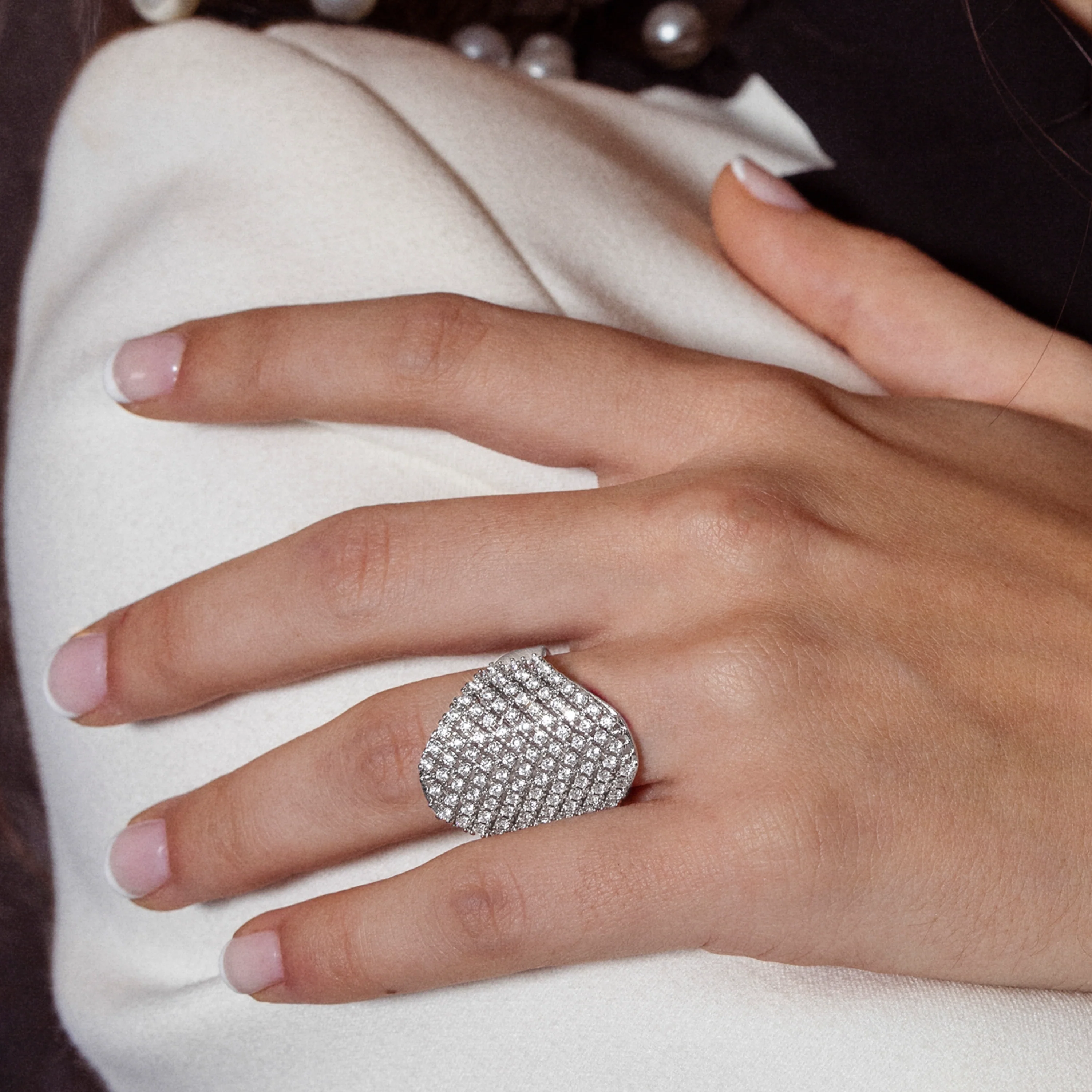 Anillo Idoi de Circonita Brillante acabado plata. África Moda te sumerge en un mundo de colores vibrantes, texturas exquisitas y diseños artesanales que reflejarán la esencia de tu espirítu.