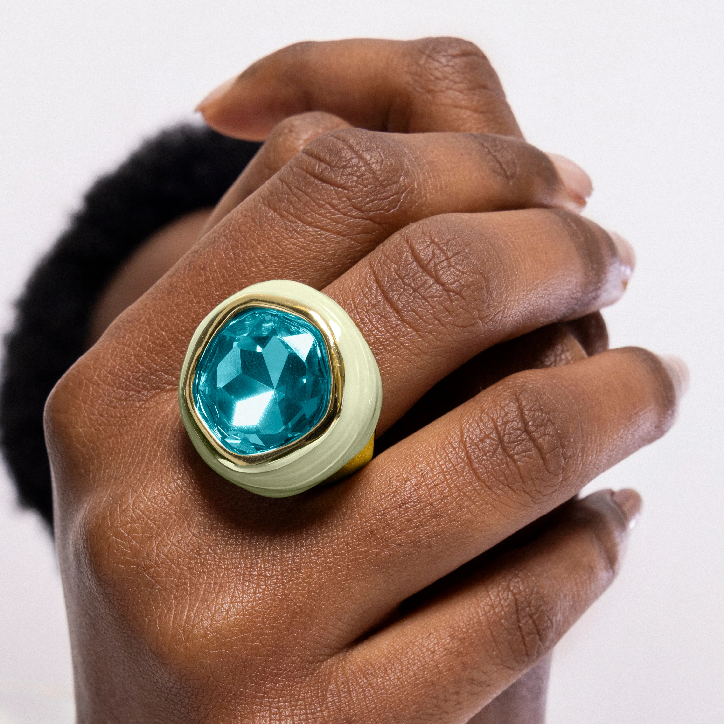 Anillo Mantis de Cristal Verde acabado en oro amarillo de 18K. África se convierte en la línea perfecta para mujeres con personalidad, que no temen arriesgar y lucir piezas con carácter propio.