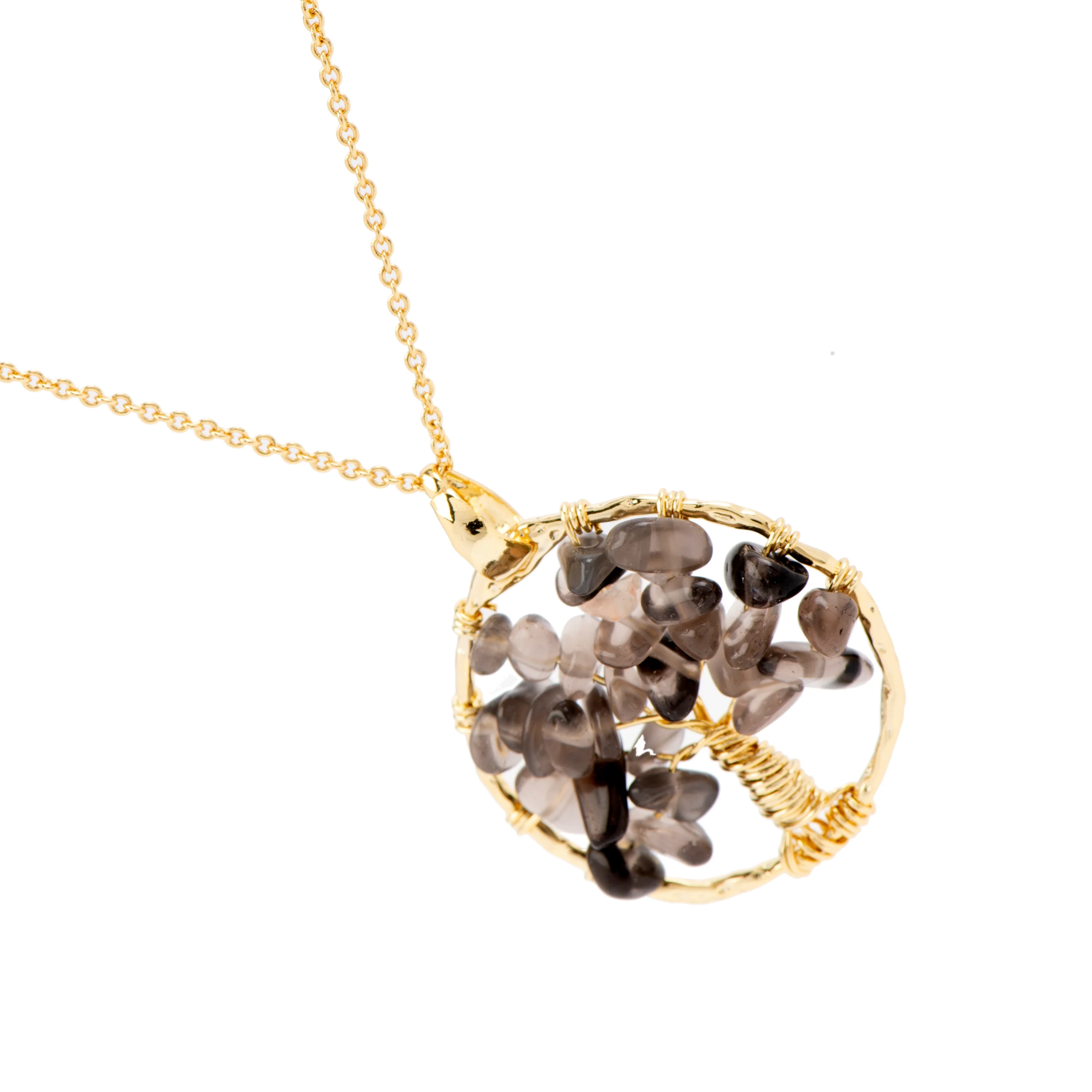 Collar de Cuarzo Ahumado Cristal de Roca acabado en oro amarillo 18K - Budleia