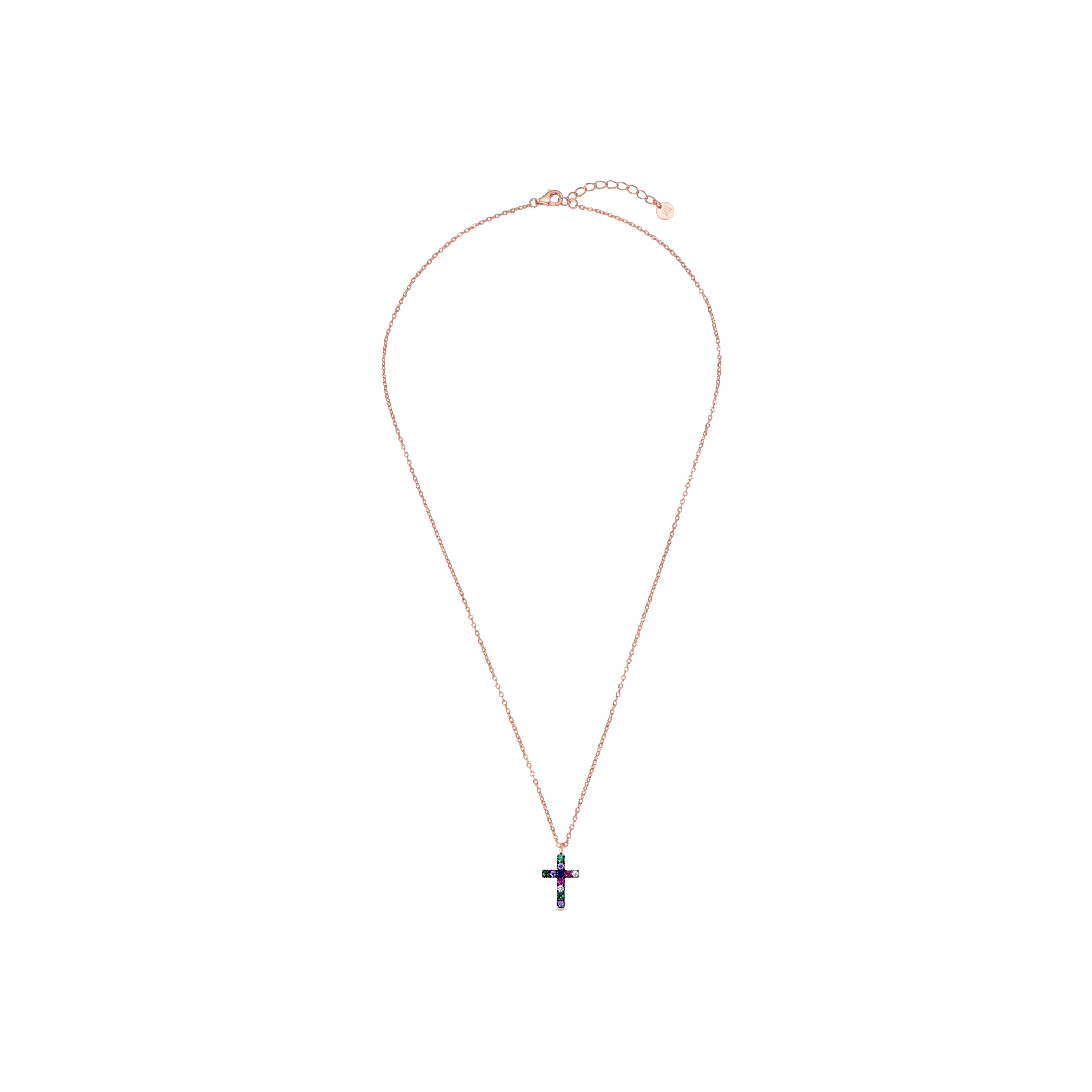 Collar de Plata de Ley 925 con Circonita Multicolor acabado en oro rosa 18K - Kon