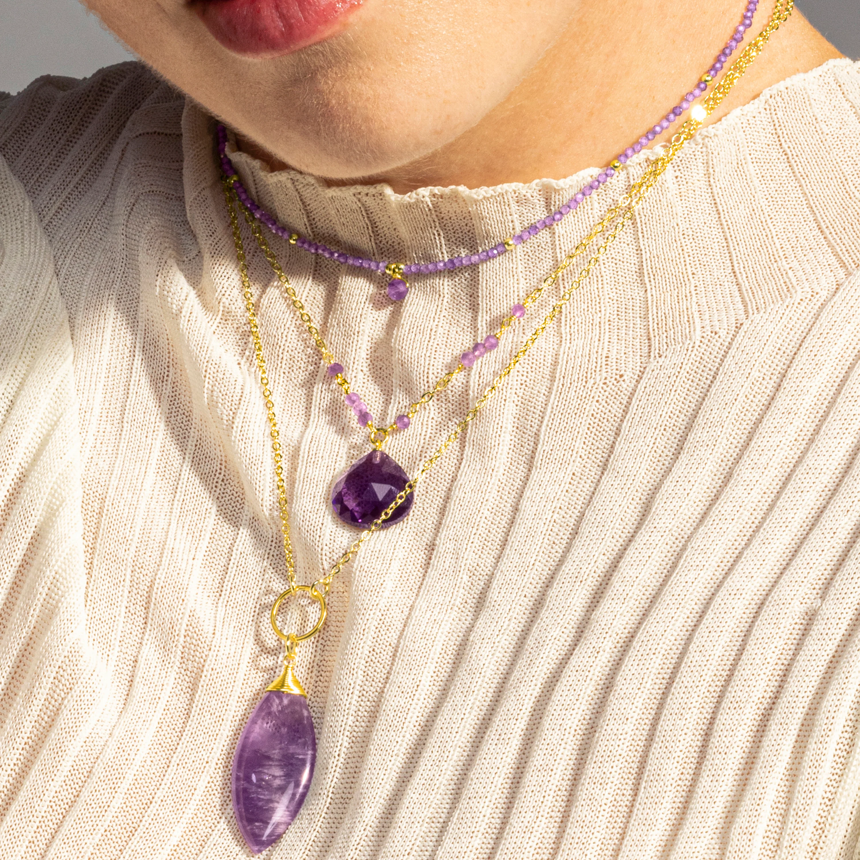 Collar de Amatista Natural acabado en oro amarillo 18K - Zoqoyi