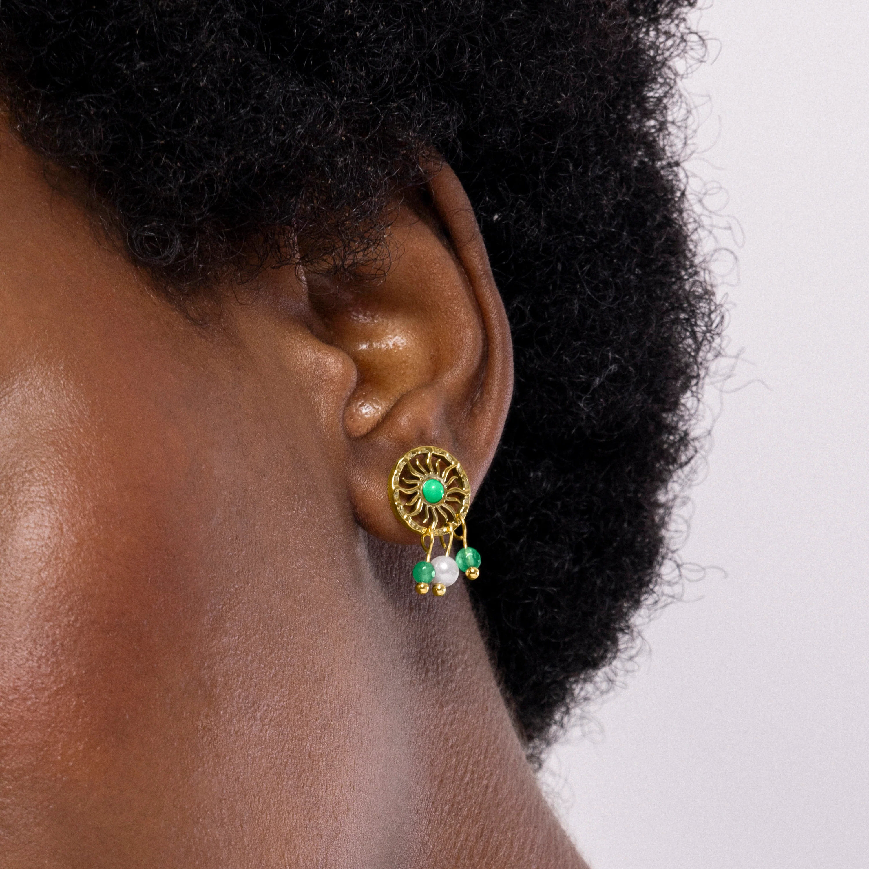 Pendientes de Malaquita acabados en oro amarillo 18K - Besya