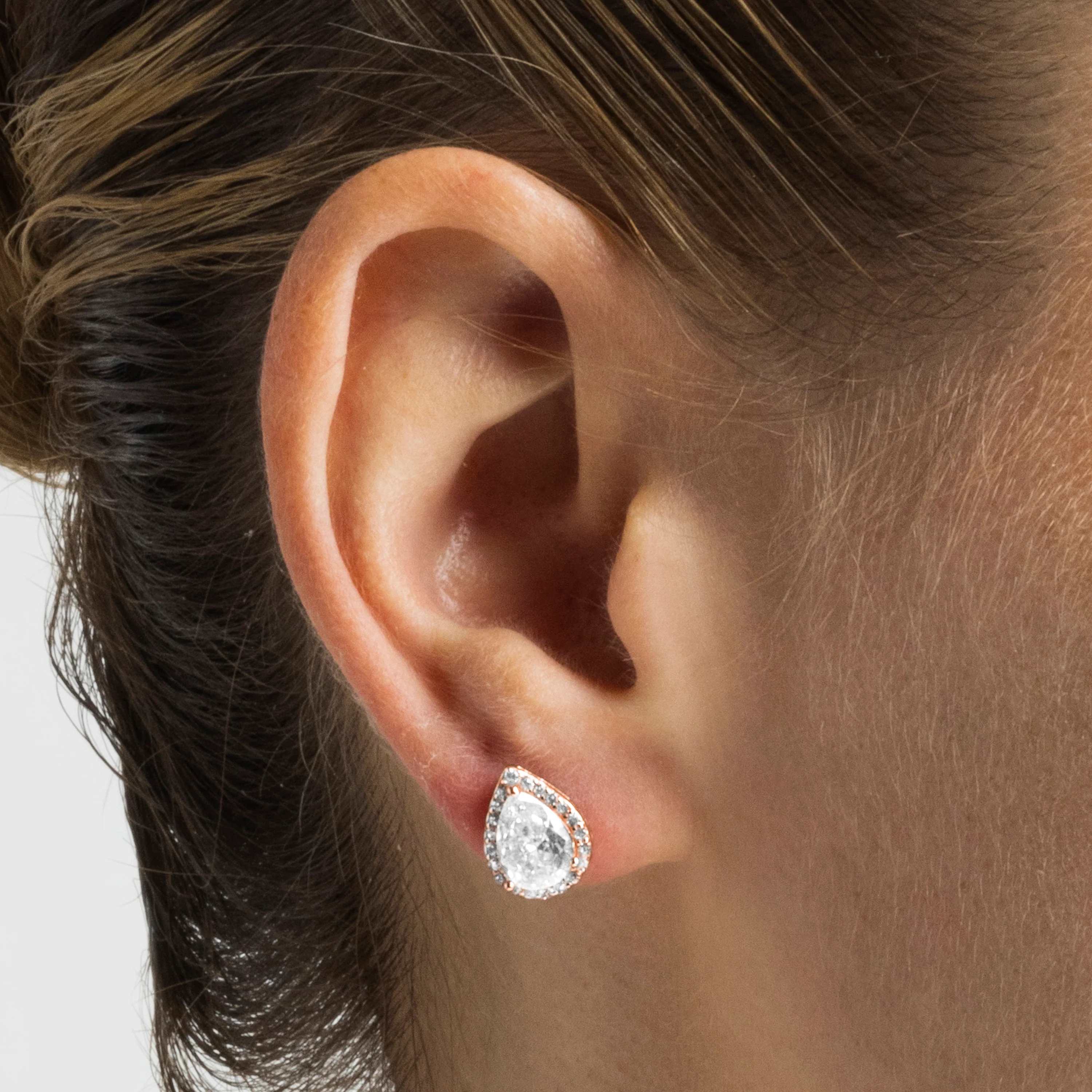 Pendientes de Plata de Ley 925 con Circonita Brillante acabados en oro rosa de 18K - Theli