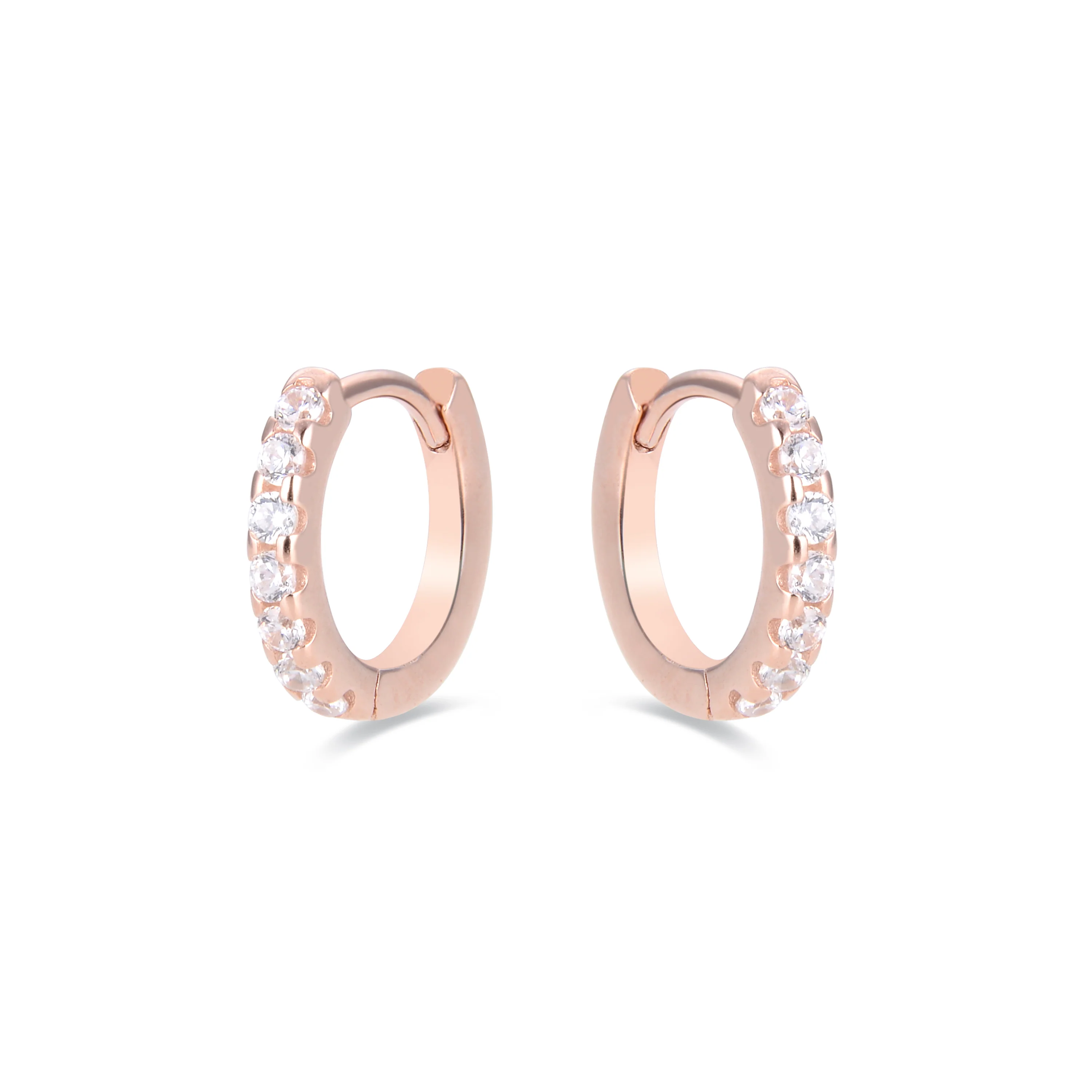 Pendientes de 9mm de Plata de Ley 925 con Circonita acabados en oro rosa de 18K - Meri